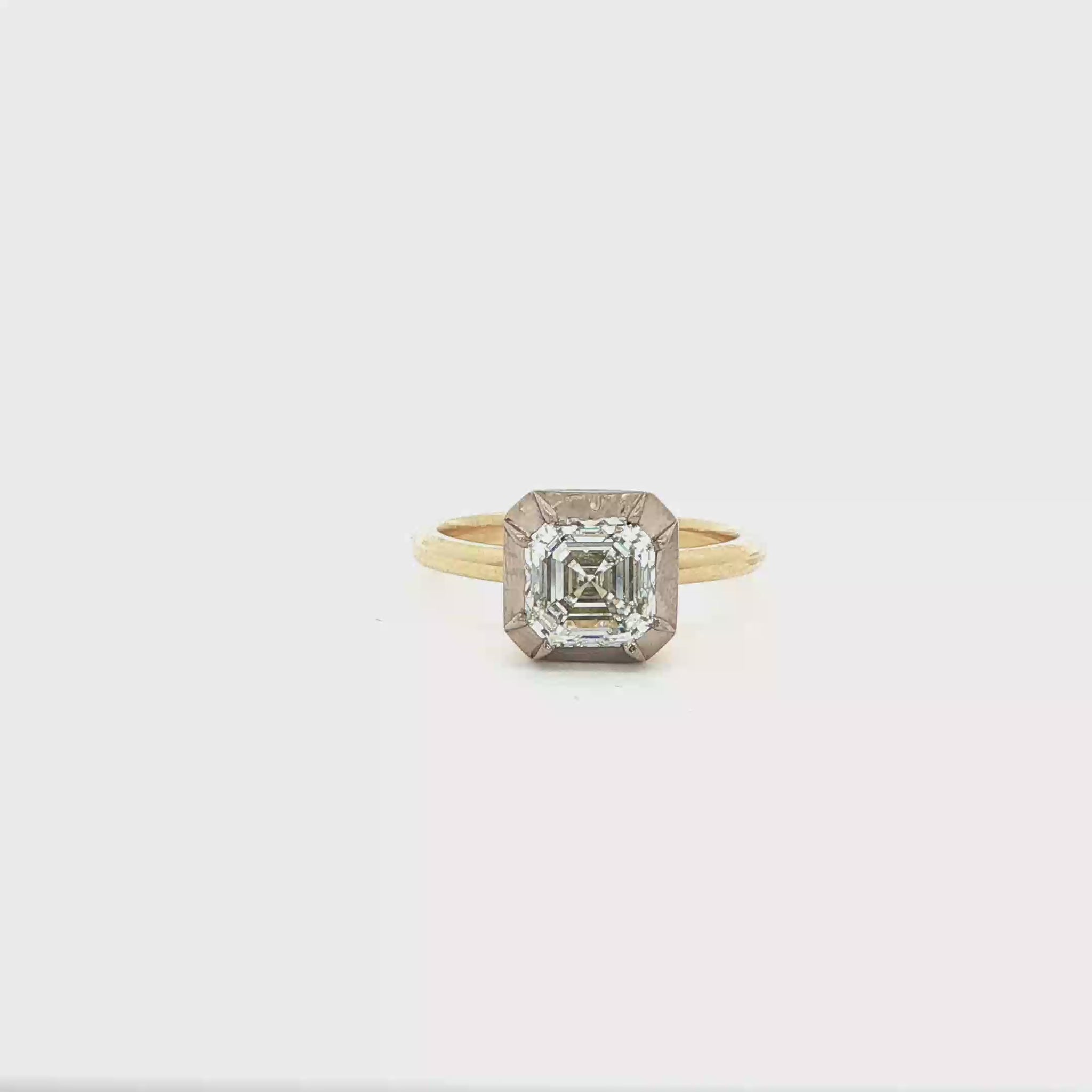 18ct Two Tone Yellow and White Asscher Cut Diamond Ring
