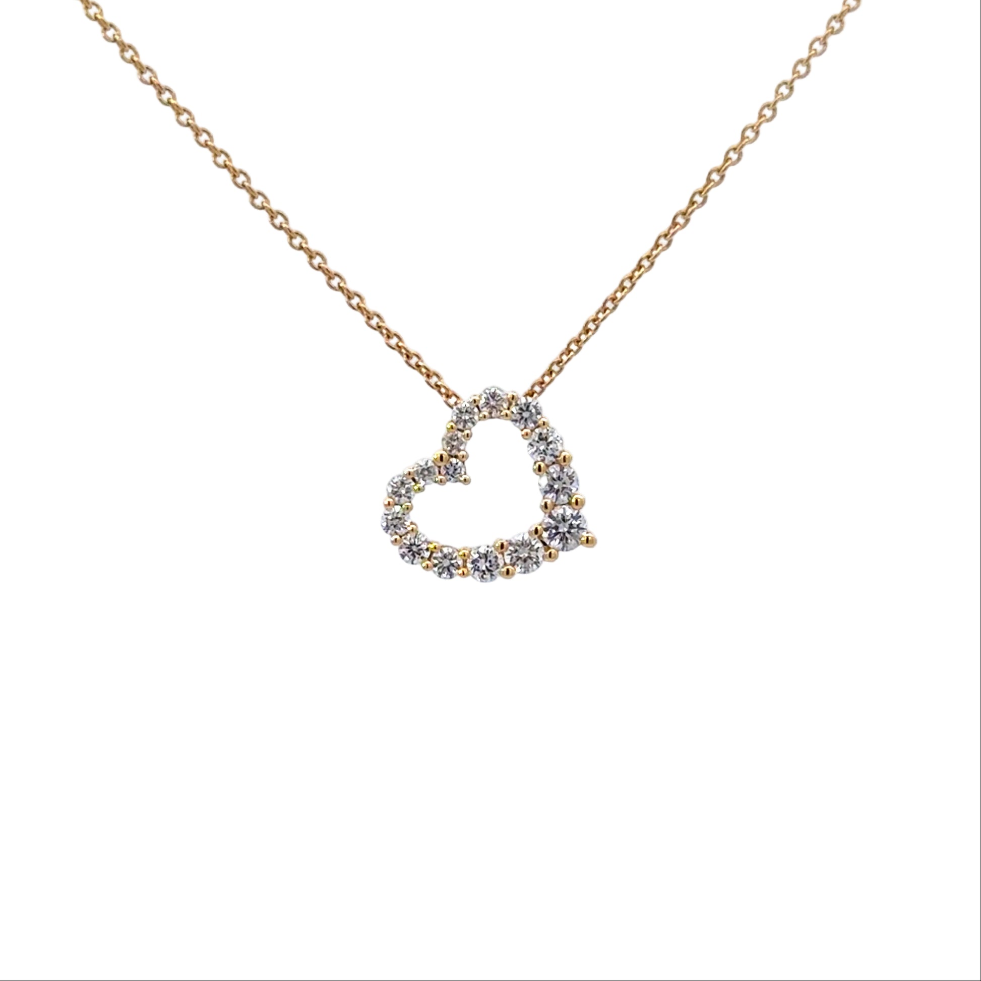 A delicate expression of love, this diamond heart pendant is crafted in warm 18ct yellow gold and set with a total of 0.38ct of brilliant-cut diamonds. The open heart design is softly outlined with shimmering diamonds, creating a light, airy silhouette that sparkles beautifully with every movement.
