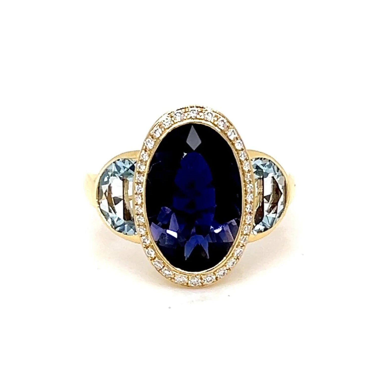 18ct Yellow Gold Iolite, Blue Topaz & Diamond Ring