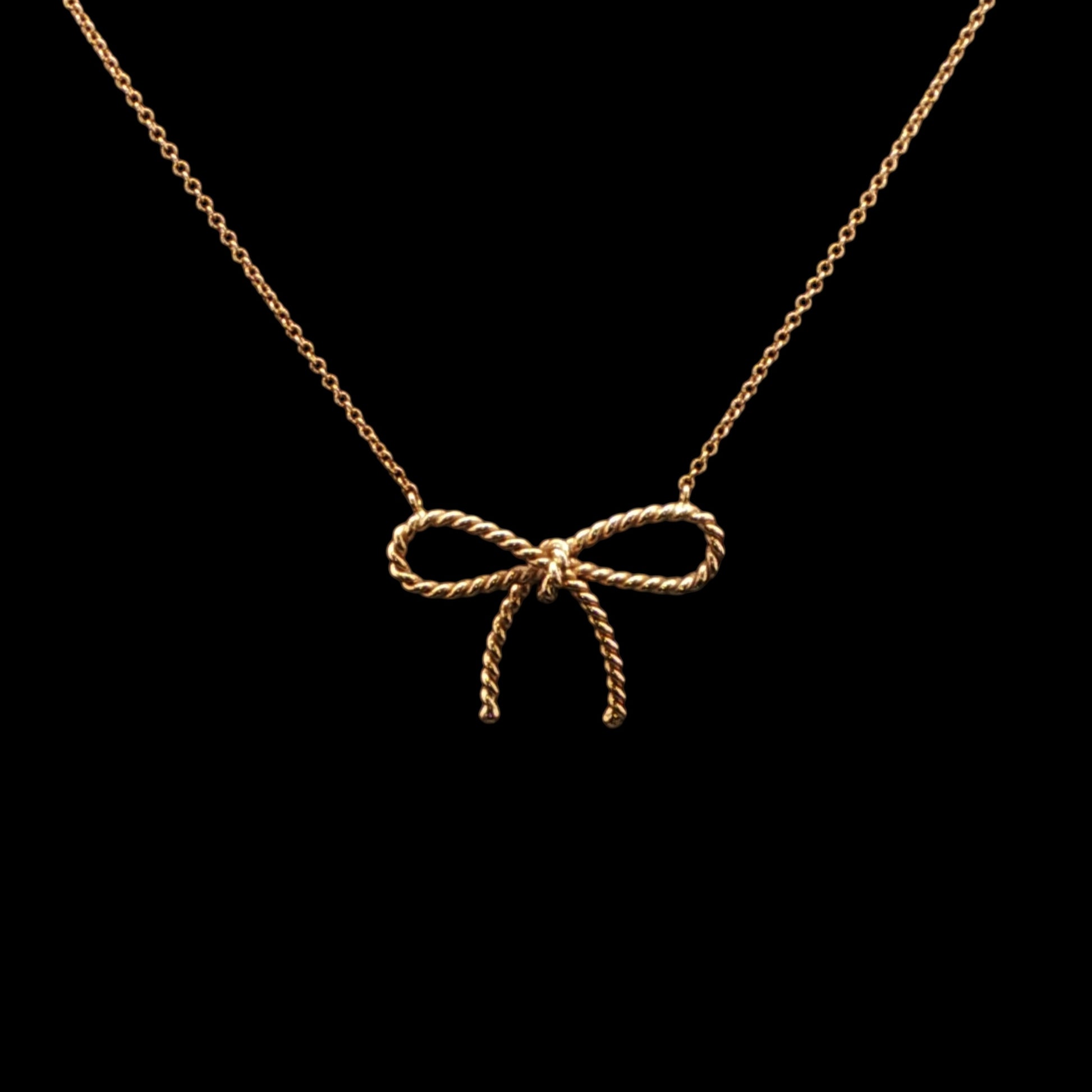 A timeless Tiffany & Co. design featuring a sculpted bow crafted in 18ct yellow gold. The twisted-rope detail adds texture and elegance, while the fine 16" chain offers a refined, comfortable fit. Perfect for everyday wear or as a meaningful gift.