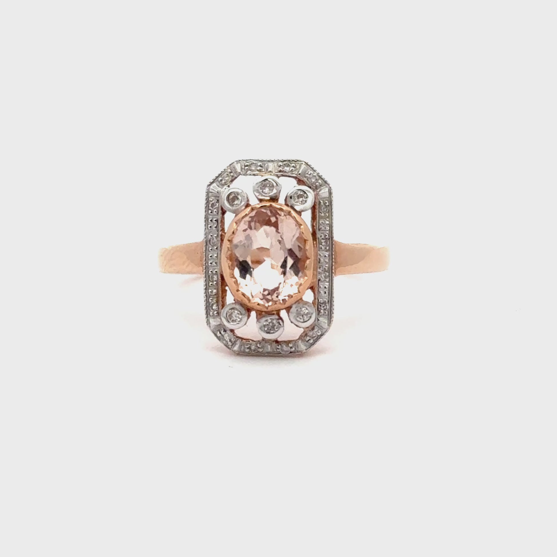 9ct Rose Gold Vintage Style Morganite and Diamond Ring